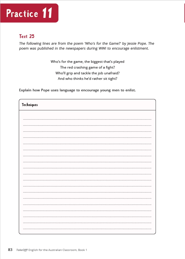 - Wide-ranging text types including prose, poetry, speeches, visuals, advertisements, internet forums, audio clips and more